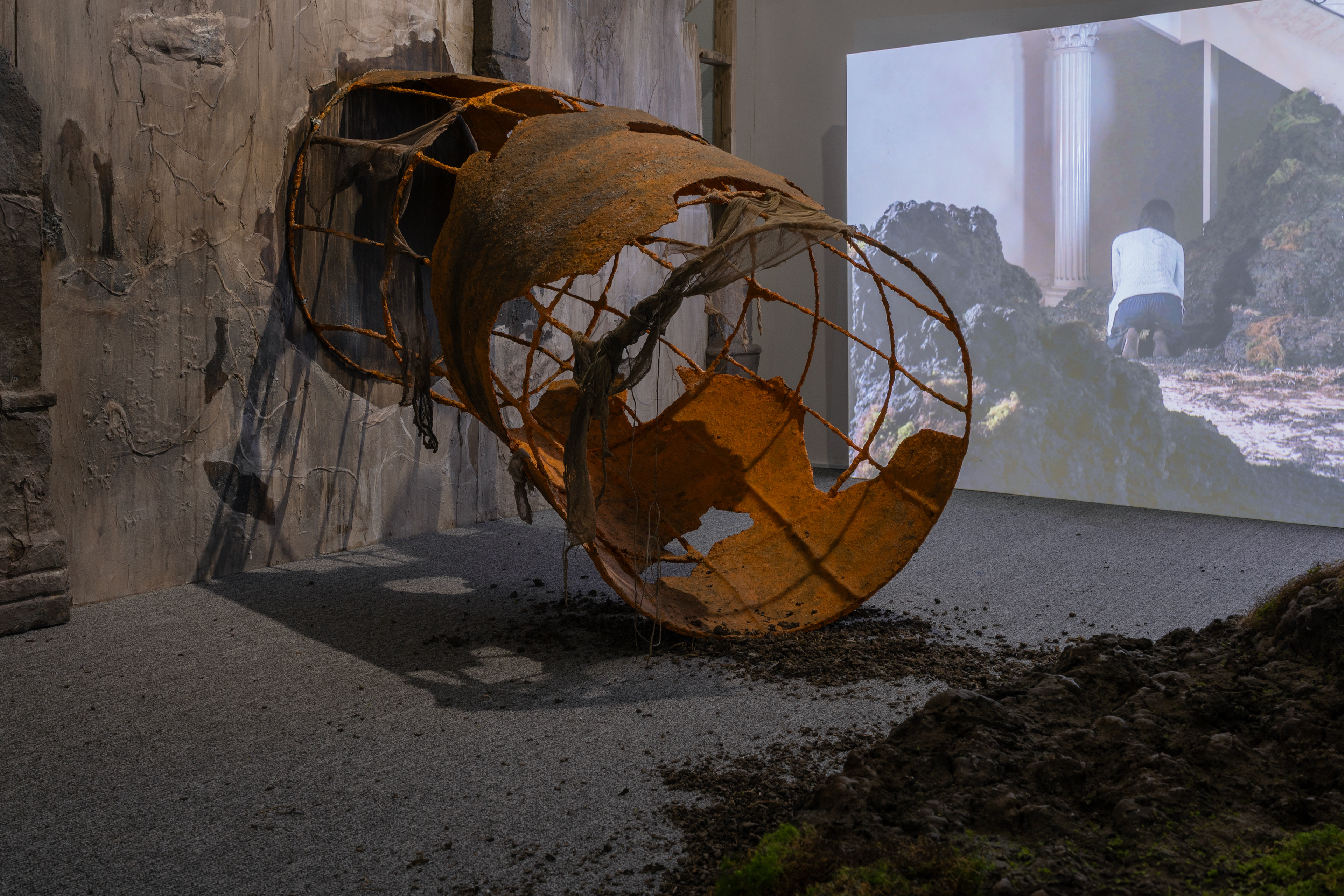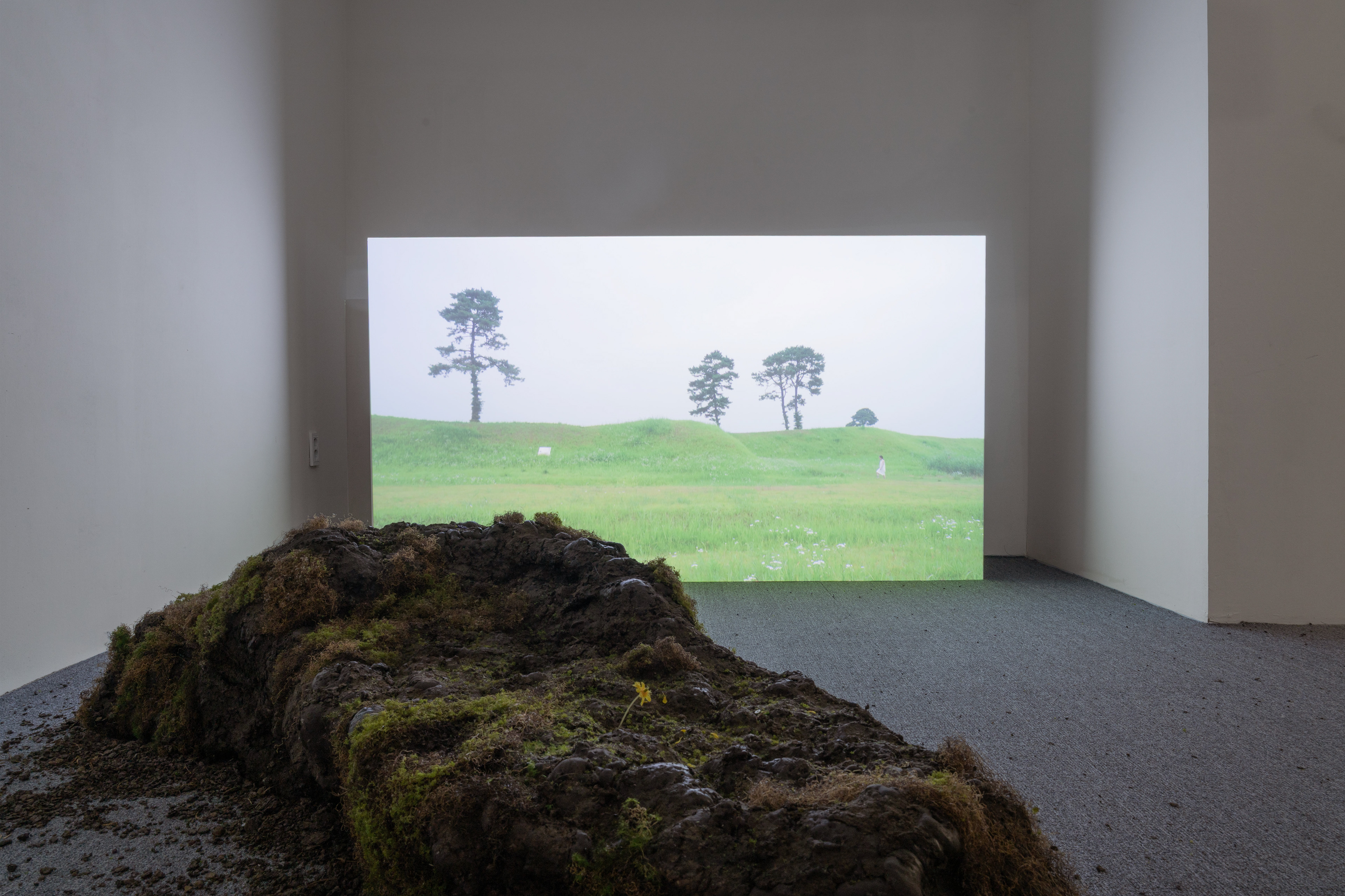 2025년 작 <Wanderbound>는 결혼, 이주, 시민권이라는 국가와 제도가 설계한 경로 속에서 자기 자리를 찾으려 하지만, 계속해서 그 자리를 잃고 미끄러지는 여성들의 서사를 진행한다. 이 작품에서 가장 중요한 구조는 마주보는 두 화면이다. 두 여성은 서로의 세계를 지나지만, 서로를 볼 수 없다. 관람객은 두 화면을 동시에 바라보려 하지만, 끝내 어느 한 쪽에 더 많은 시선을 보내게 된다.