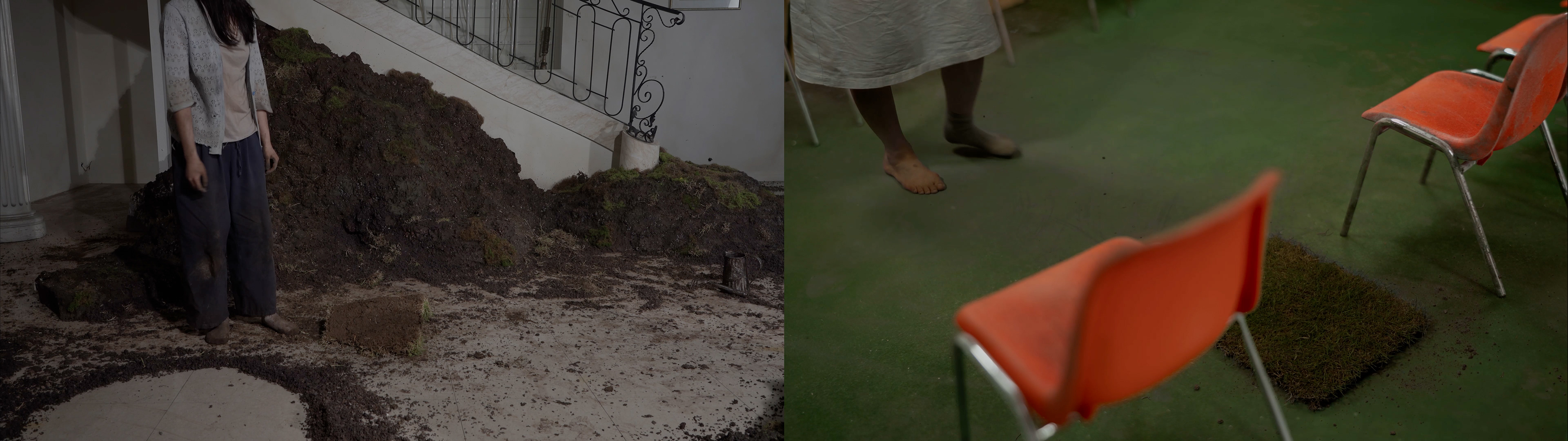 〈Wanderbound〉 traces two figures who have exchanged their places, moving between two unsettled grounds. It explores migration, repetition, and the fragile condition of “having no place.”