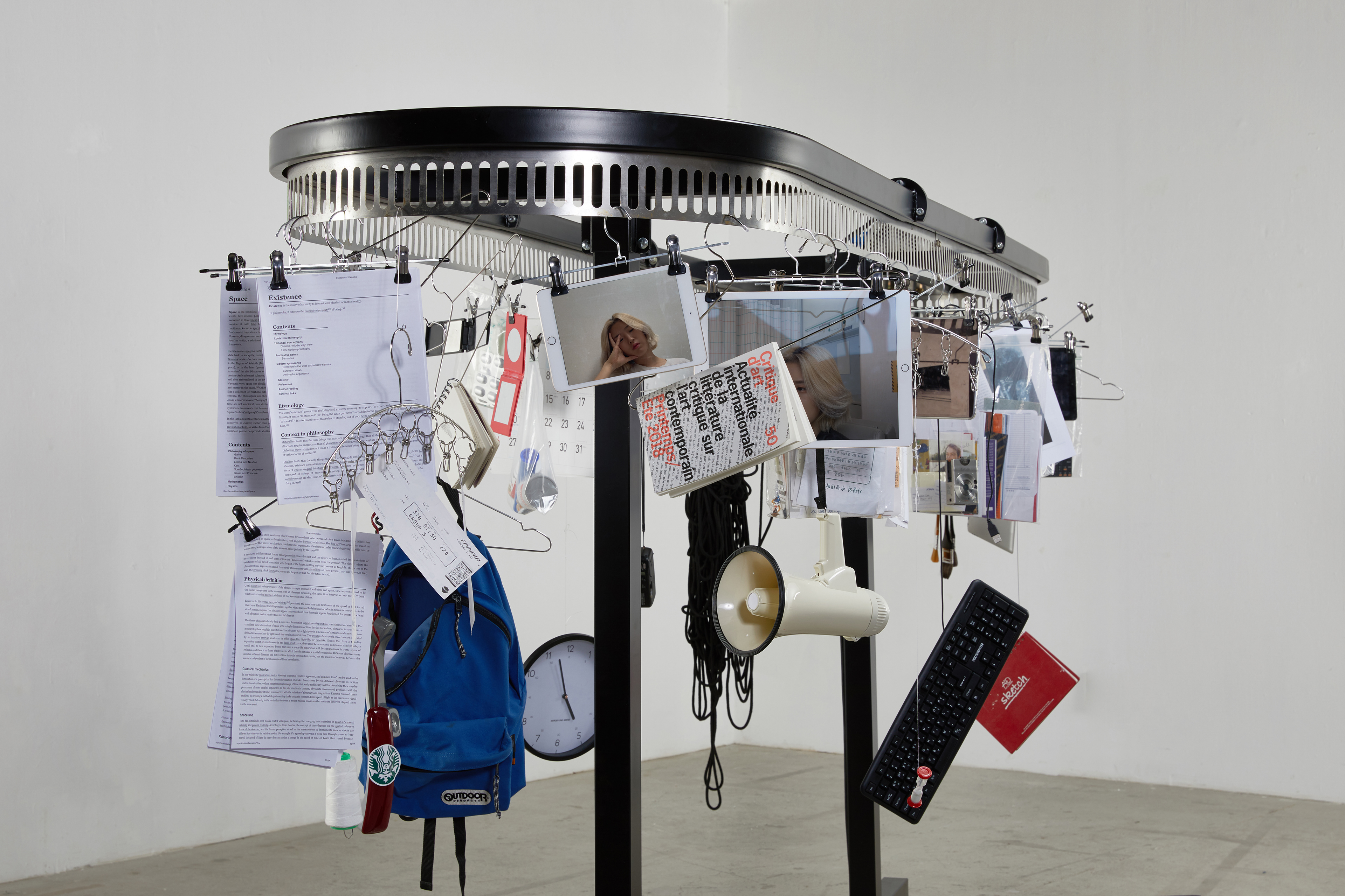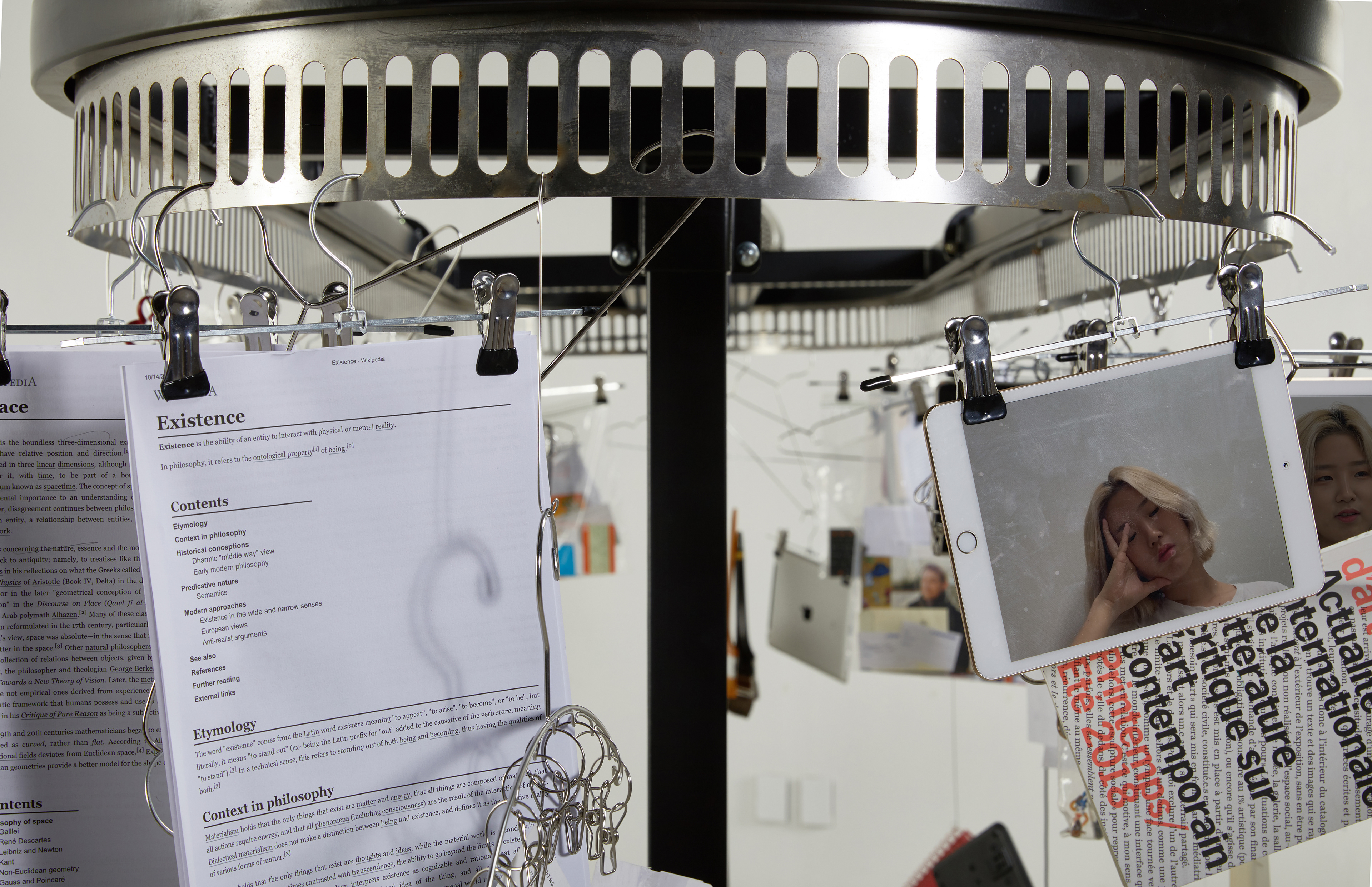 Automatic hanger, multi-channel video, 6 iPads, mixed media